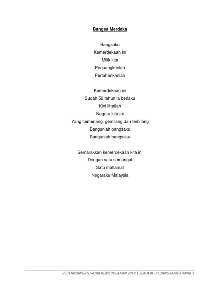 Berdiri megah di pentas wira. You can try to find this item in a library or search in this text to find the frequency and page number of specific words and phrases. Inginku tebus maruah bangsa · terjaga dari ranjang kecewa. Search q sajak kemerdekaan tbm isch. Ku teringat titik darah pejuang bangsa,malaysia kini 57 tahun,di sini lahirnya sebuah cinta.